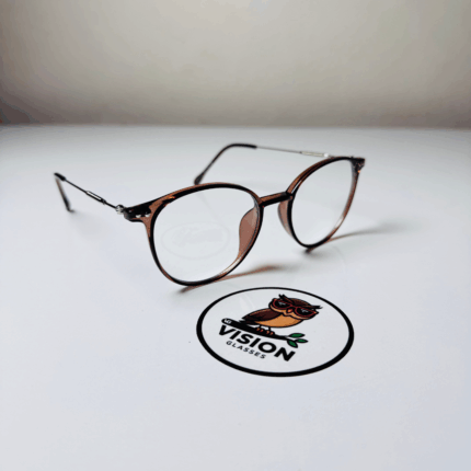Mocha Kahverengi Yuvarlak Hafif Metal Saplı Unisex Şeffaf Camlı Mavi Işık Koruyucu Gözlük